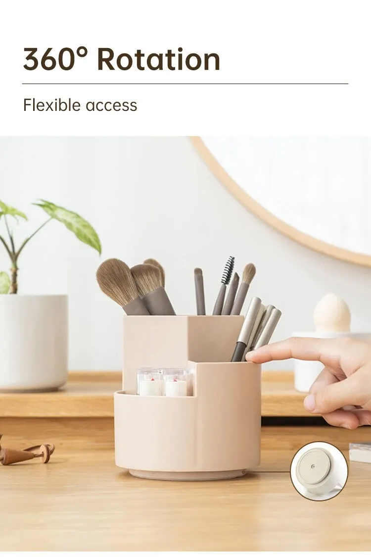 Diseño giratorio: Su innovador diseño giratorio facilita el acceso a todos los compartimentos, lo que garantiza un almacenamiento y una recuperación cómodos de bolígrafos, lápices, rotuladores, tijeras, brochas de maquillaje y otros artículos pequeños. Gire el soporte fácilmente para encontrar la herramienta perfecta para cada tarea.