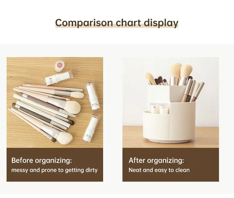 Despeja tu espacio de trabajo y optimiza tu rutina diaria con el portalápices giratorio y la caja para lápices. Ya seas estudiante, profesional o aficionado al maquillaje, este organizador multifuncional está diseñado para simplificarte la vida y mejorar tu productividad.